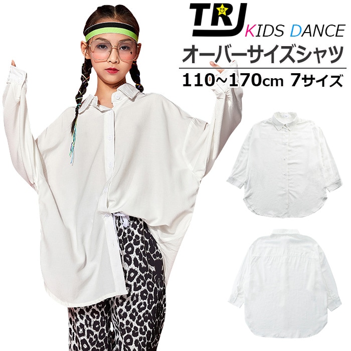 正午まで当日発送(土日祝除く)ホワイト シャツ カジュアルシャツ オーバーサイズ ビックサイズ 大きめ 女の子 男の子 子供服 キ...