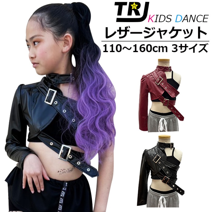 5~7営業日で発送 アシンメトリー レザージャケット ショート丈 トップス 長袖 キッズ ダンス衣装 子供服 ブラック レッド 1...