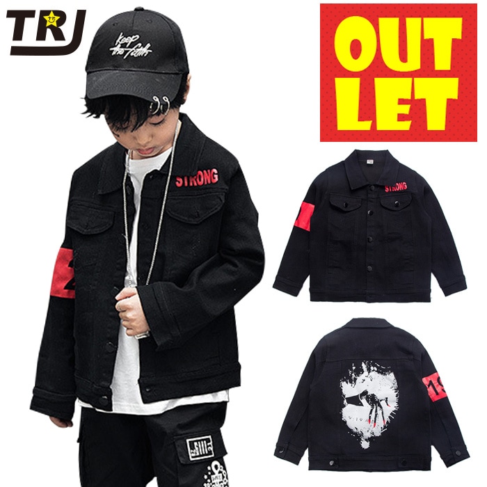 正午まで当日発送(土日祝除く) アウトレット デニム ジャケット キッズ ジージャン 黒 ブラック ロック キッズ ダンス ヒップ...