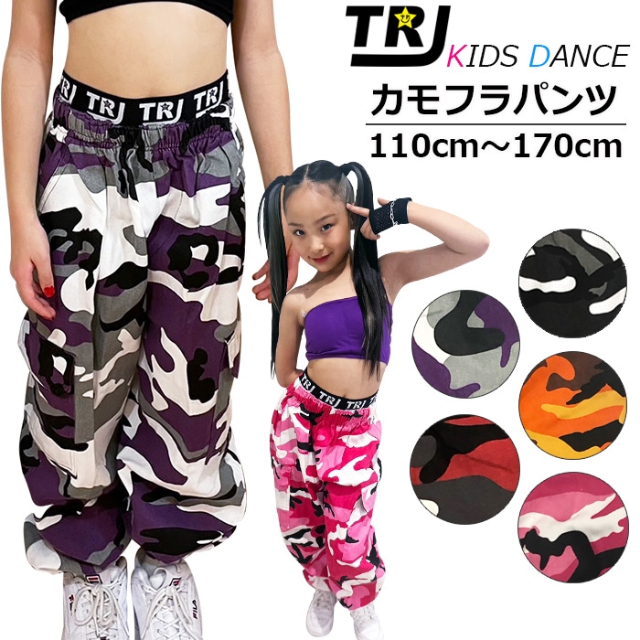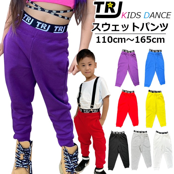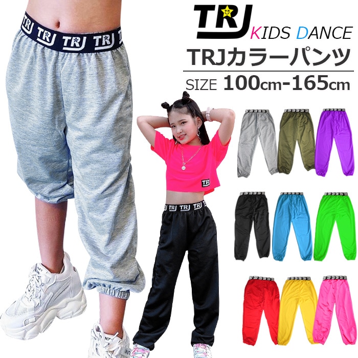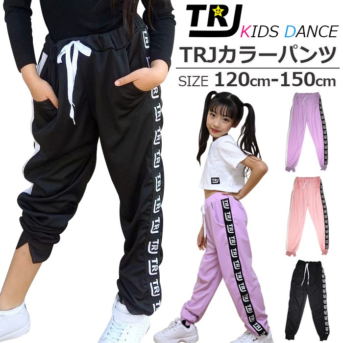 ★TRJオリジナル ダンスパンツ カラーパンツ ロゴテープ 左右アシンメトリー ダンス衣装 ヒップホップ 女の子 男の子 子供服 ...
