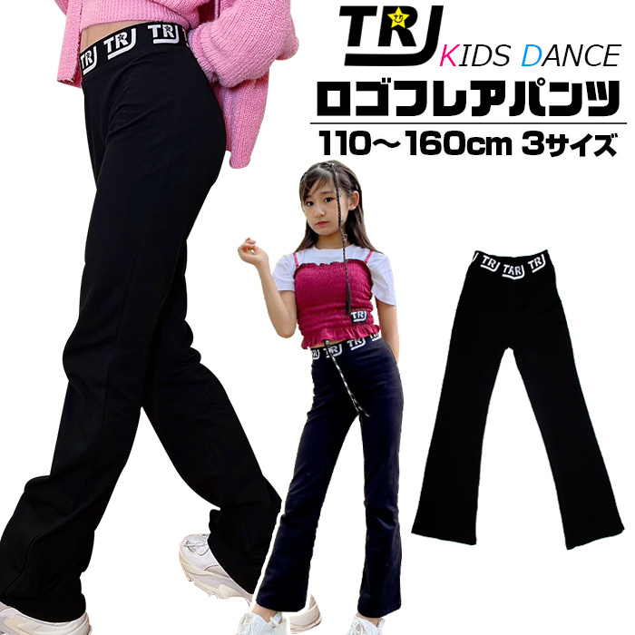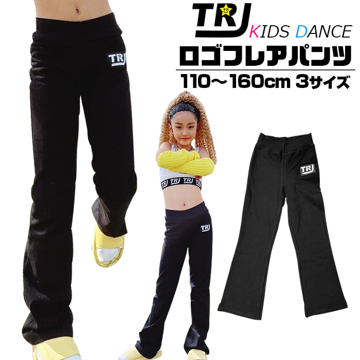 3~5日で発送予定 ウェスト ロゴ キッズ フレアパンツ ストレッチ ダンス 衣装 女の子 子供服 無地 ブラック 110cm~1...
