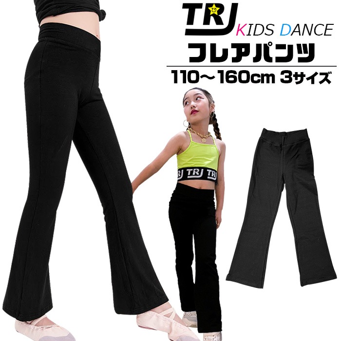 正午まで当日発送 キッズ フレアパンツ ストレッチ ダンス 衣装 女の子 子供服 無地 ブラック 110cm~160cm ダンス衣...