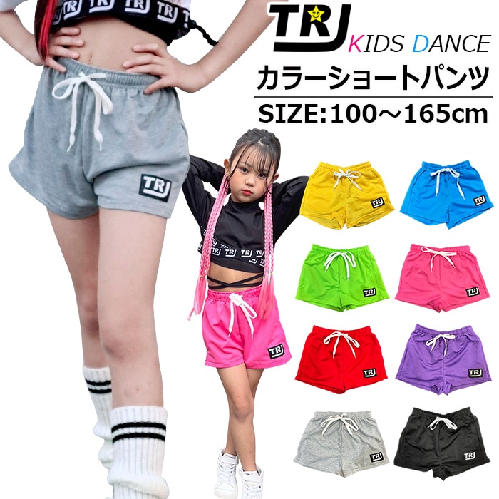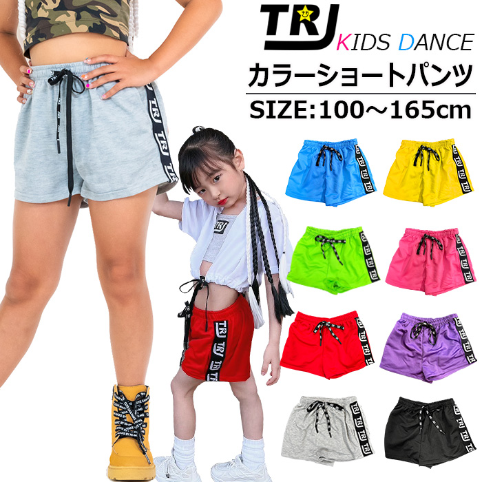 3~5日で発送予定 ハーフパンツ ダンスパンツ カラーパンツ ウェストロゴ 無地 バスケットパンツ シンプル ダンス衣装 キッズ ...