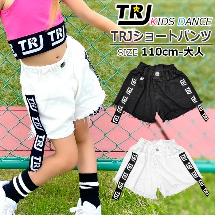 3~5営業日で発送予定★TRJオリジナル★ショートパンツ ダメージデニム 女の子 子供服 キッズ 無地 ロゴリボン ブラック/ホワ...