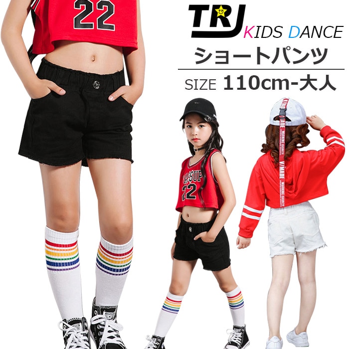 正午まで当日発送 ハーフパンツ ダンスパンツ カラーパンツ ロゴひも 無地 バスケットパンツ シンプル ダンス衣装 キッズ 女の子...