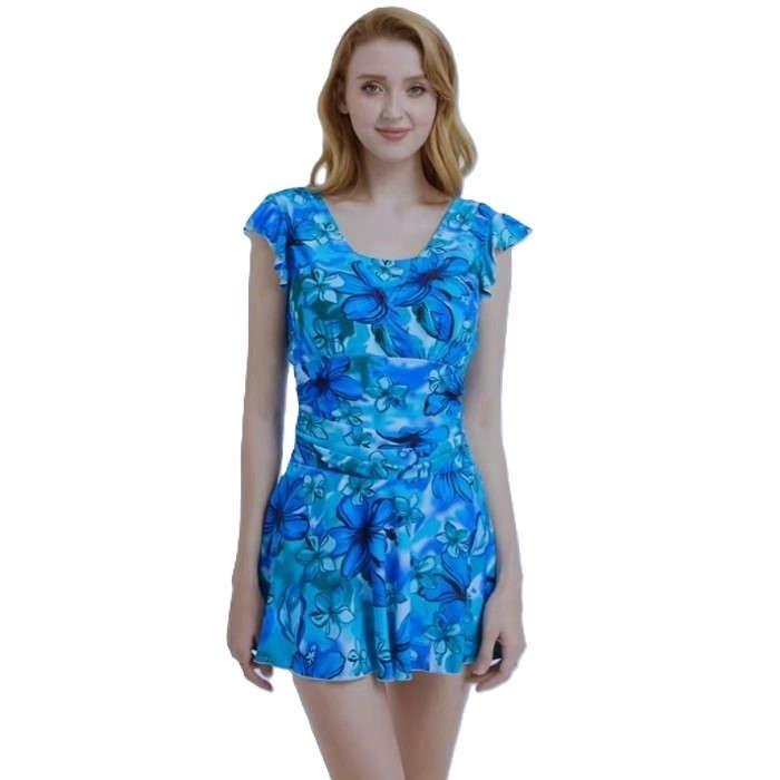 【乳がん】【摘出】 バストポケット水着: タックフレアアクア(サイズLL-3L)