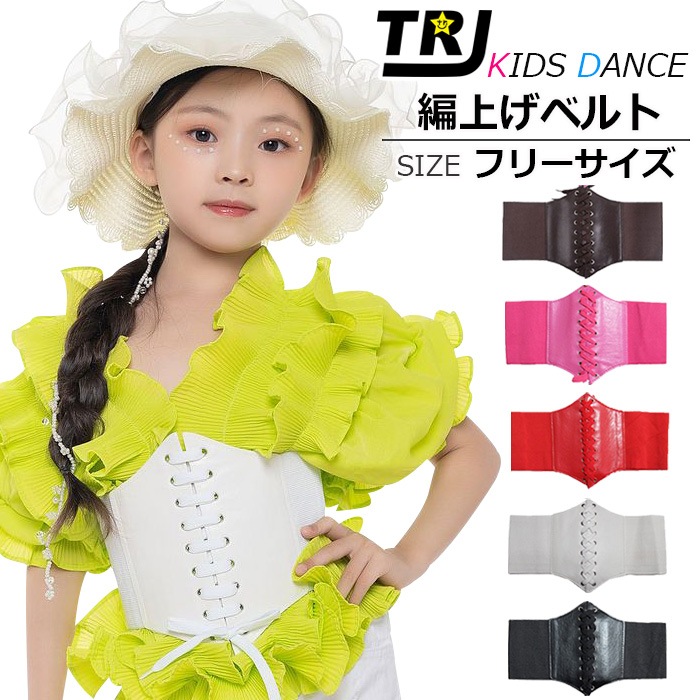 正午まで当日発送(土日祝除く)コルセット風 太ベルト 編み上げ レースアップ 幅広 女の子 子供 フェイクレザー 無地 レッド ブ...