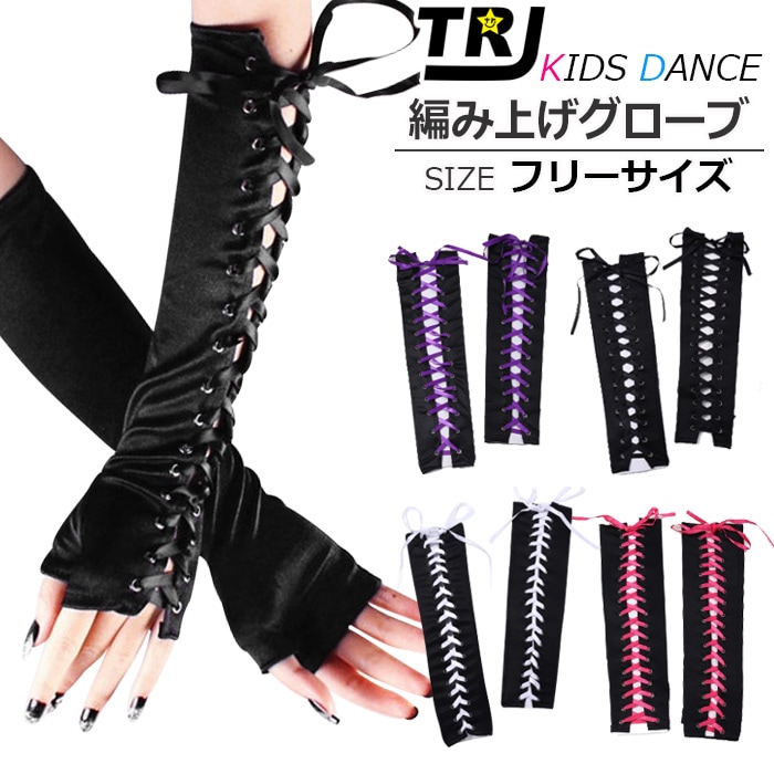 営業日は正午まで当日発送 編み上げ ロンググローブ アームウォーマー リボン サテン素材 キッズ 子供 女の子 無地 レッド パー...