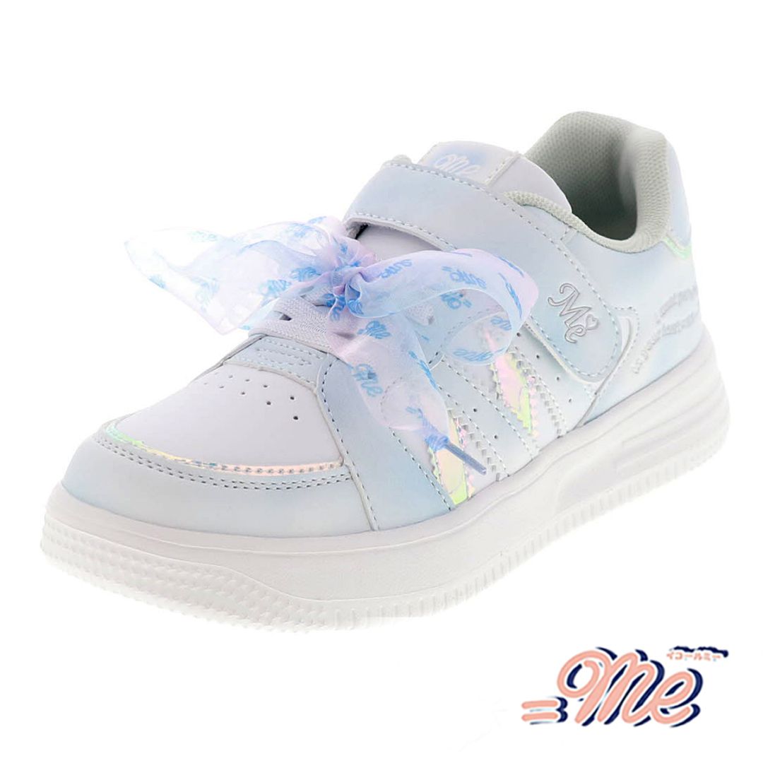 イコールミー キッズ スニーカー 2WAY リボン 厚底 軽量 ベルクロ ME-3754 女の子 ホワイト 白 シフォン キラキラ