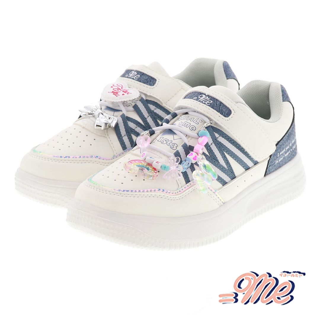 イコールミー =ME キッズ スニーカー 厚底 軽量 ベルクロ ME-3794 女の子 デニム ホワイト キラキラ チャーム付き