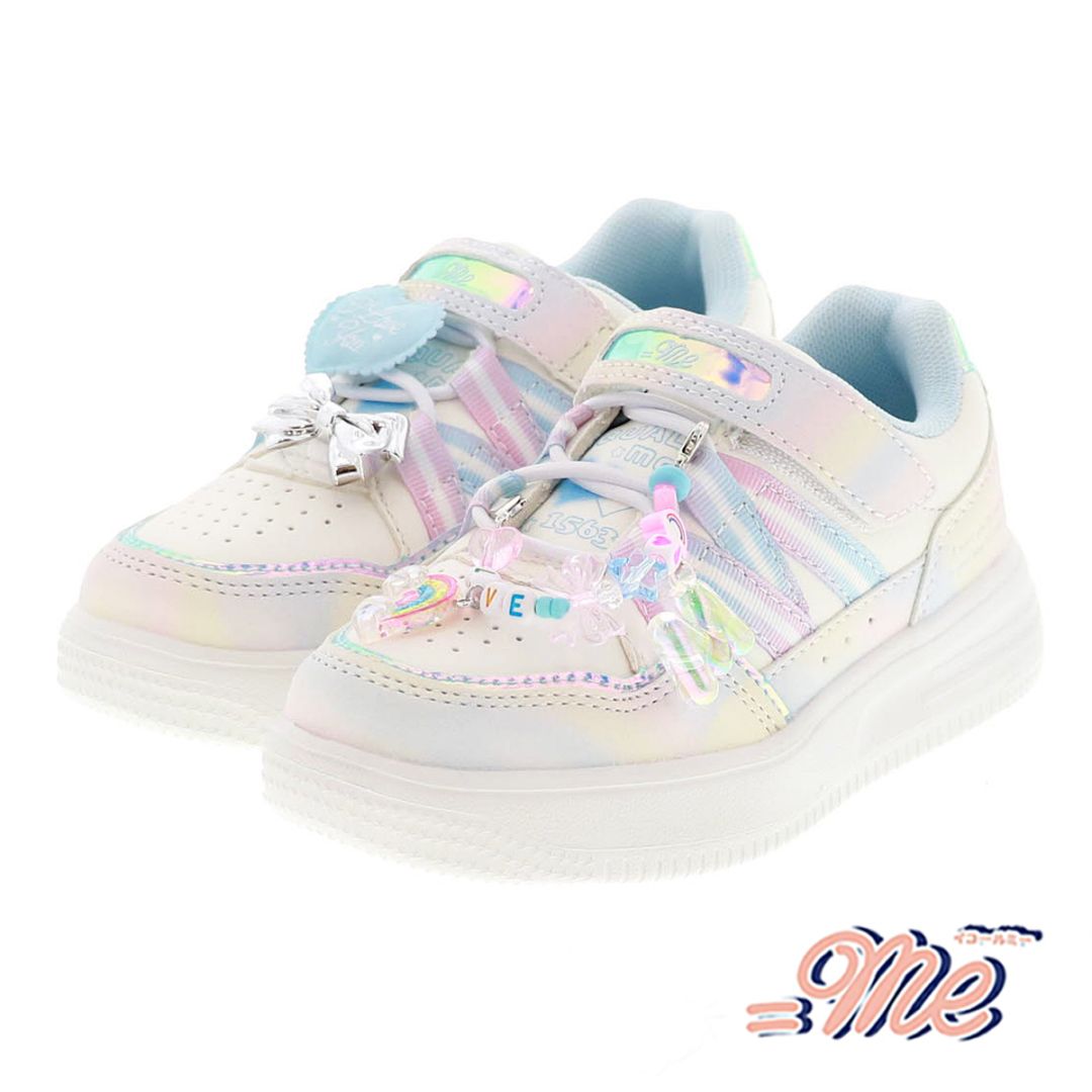 イコールミー =ME キッズ スニーカー 厚底 軽量 ベルクロ ME-3794 女の子 マルチ ホワイト キラキラ チャーム付き