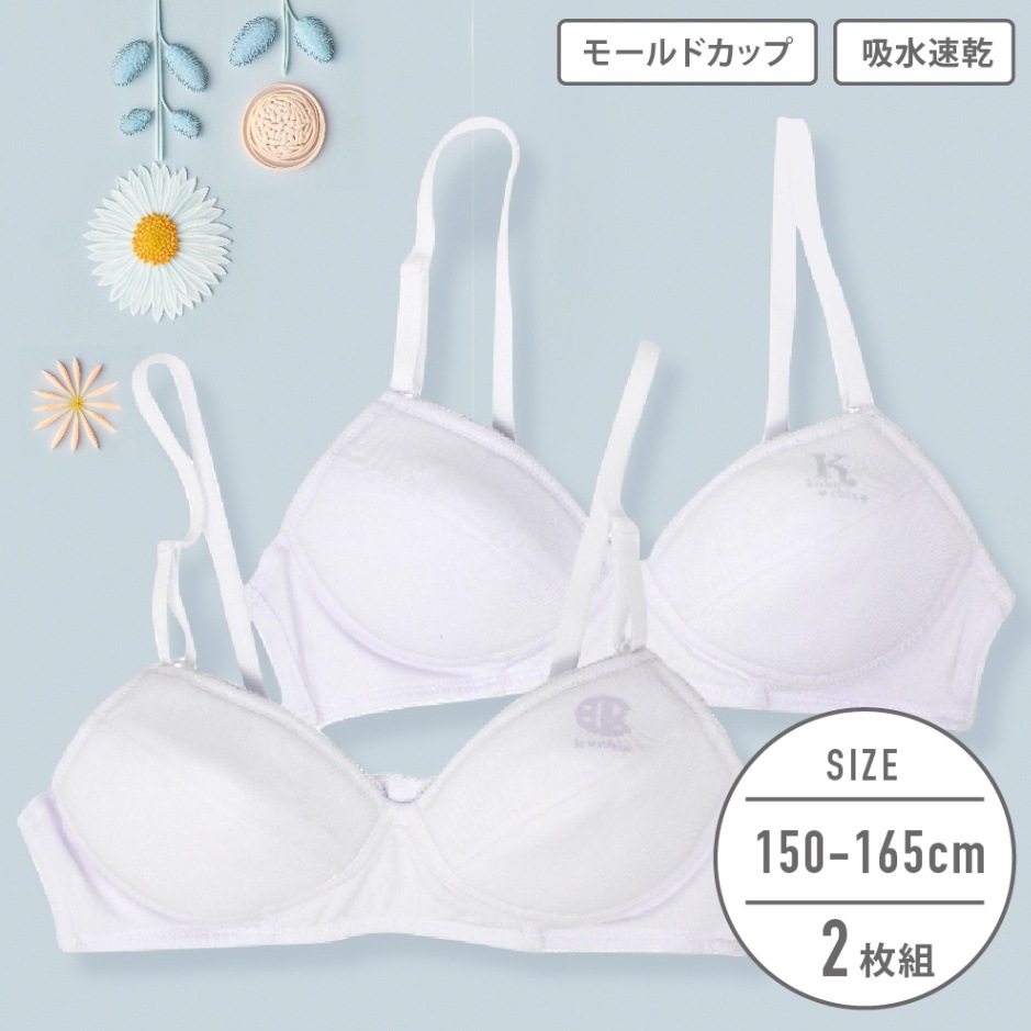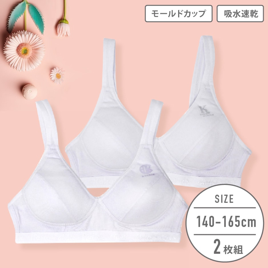 【女の子】ブラジャー モールドカップ/ホワイト/ノンワイヤー 150~165cm 【吸水速乾】