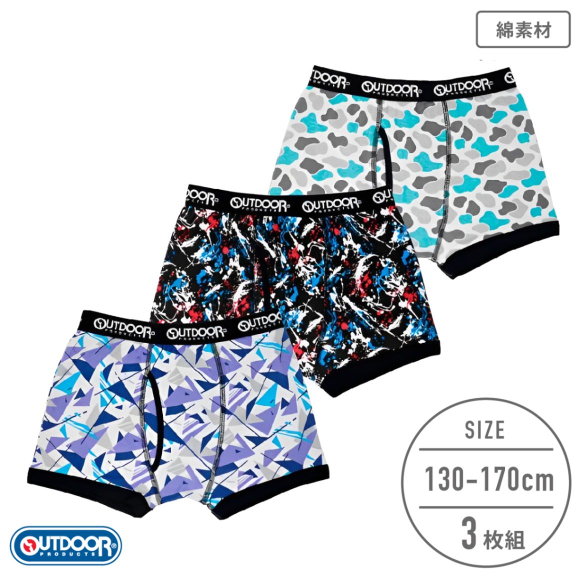 送料無料【OUTDOOR PRODUCTS】【男の子】 ボクサー パンツ 3枚組 総柄 130~170cm【本体:綿100%】