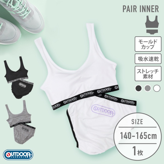 【OUTDOOR PRODUCTS】【女の子】ペアインナー ジュニアブラ&ショーツ モールドカップ ホワイト/ブラック/グレー杢 ...
