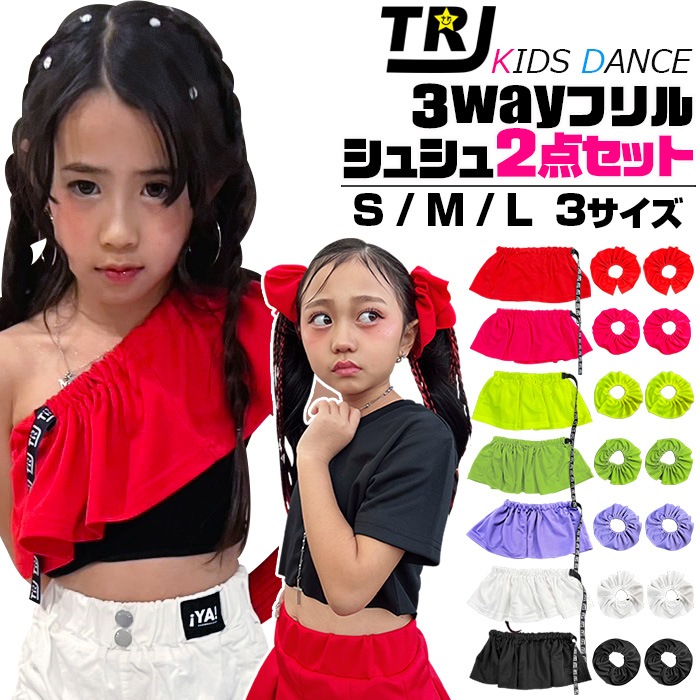 3~5日で発送予定 フリルトップス 3way オフショル ワンショルダー ミニスカート チューブトップ S M L 女の子 子供服...