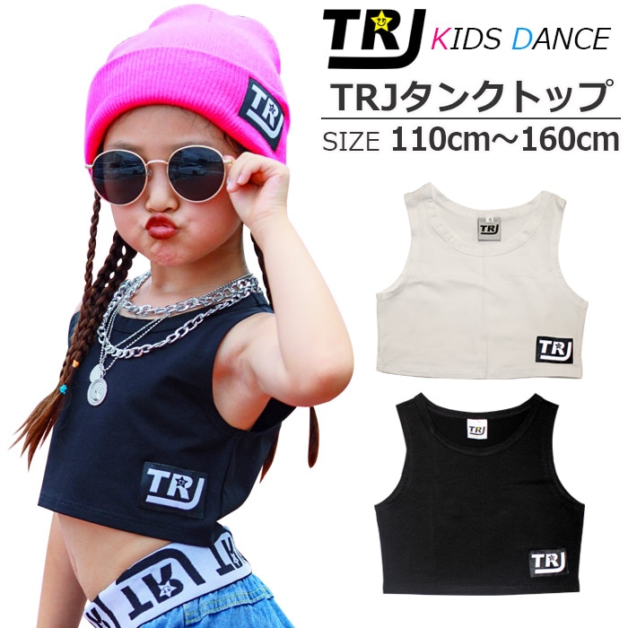 TRJオリジナル★5~7営業日で発送 ショート丈 タンクトップ ノースリーブ 女の子 子供服 キッズ 無地 ロゴ 140cm~レデ...