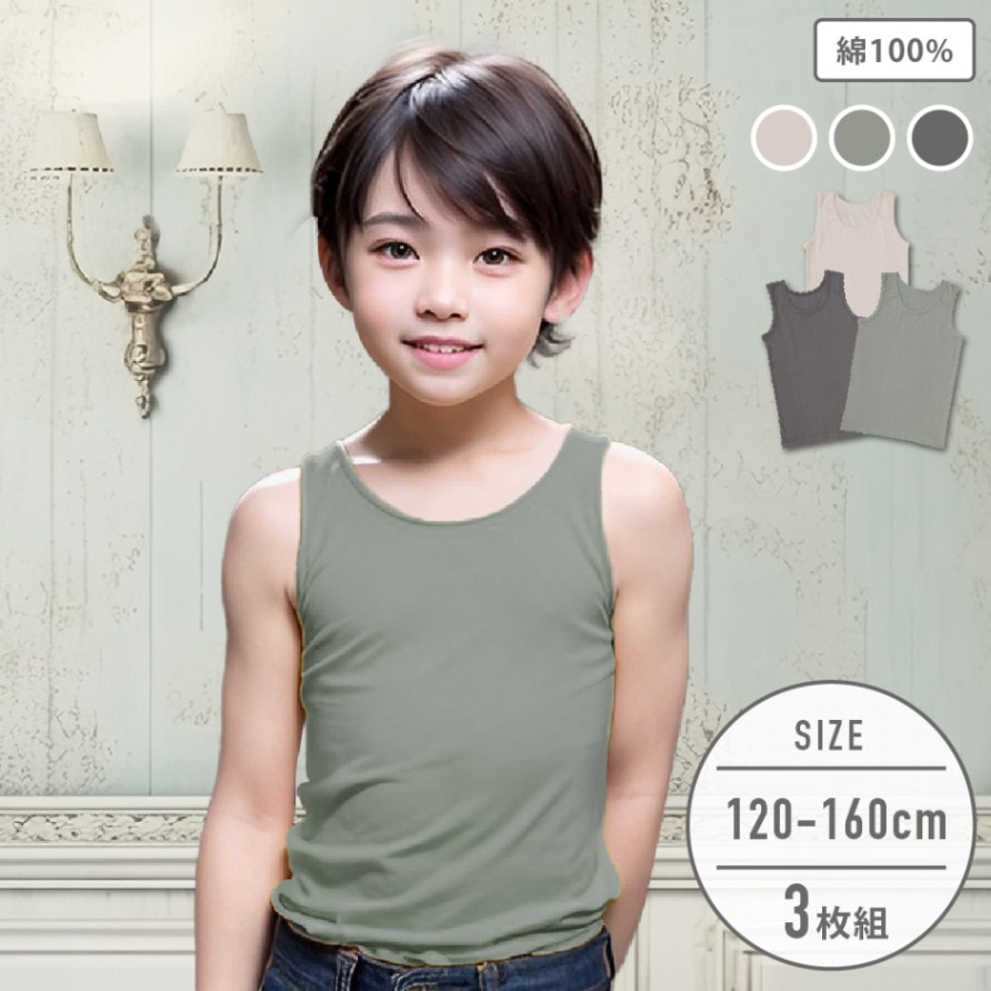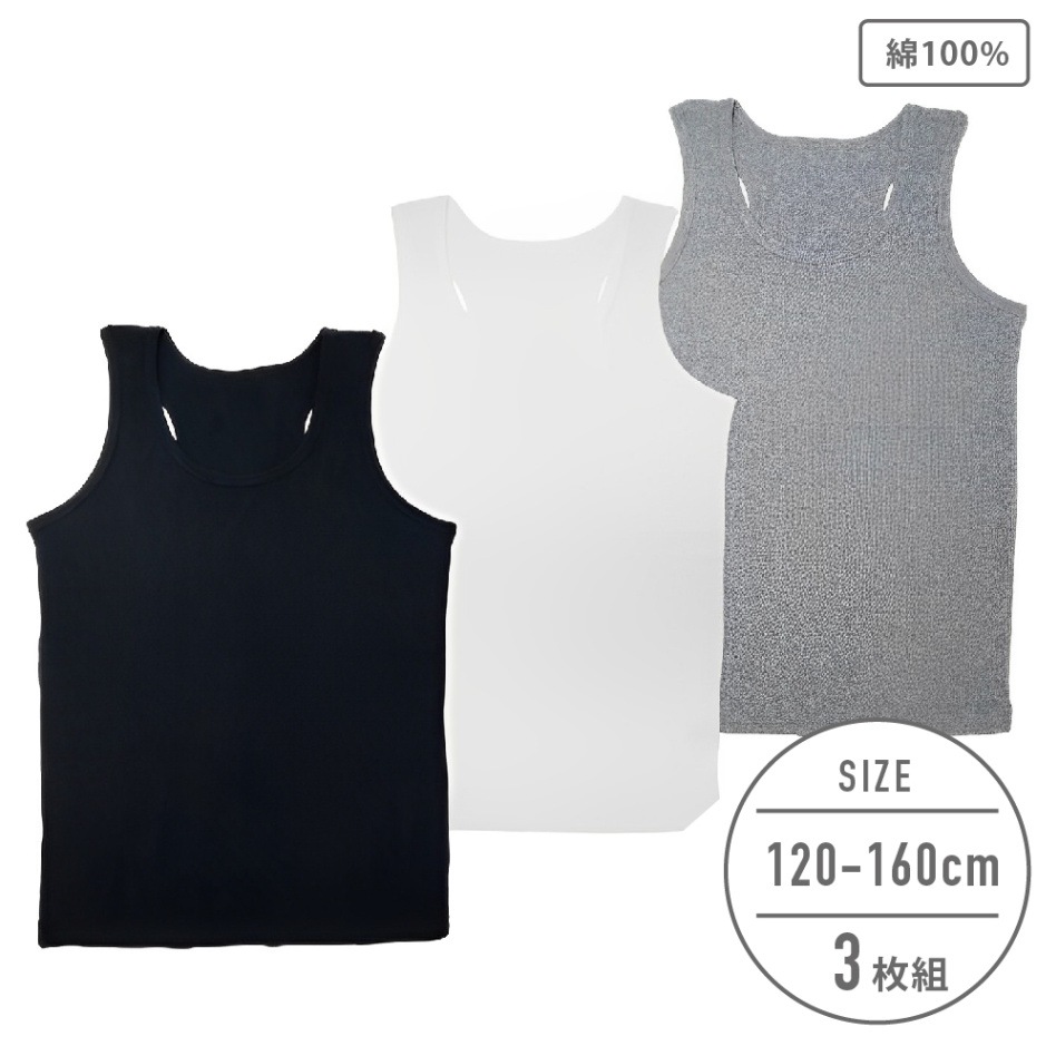 【男の子】タンクトップ 3枚組 無地 120~160cm【綿100%】