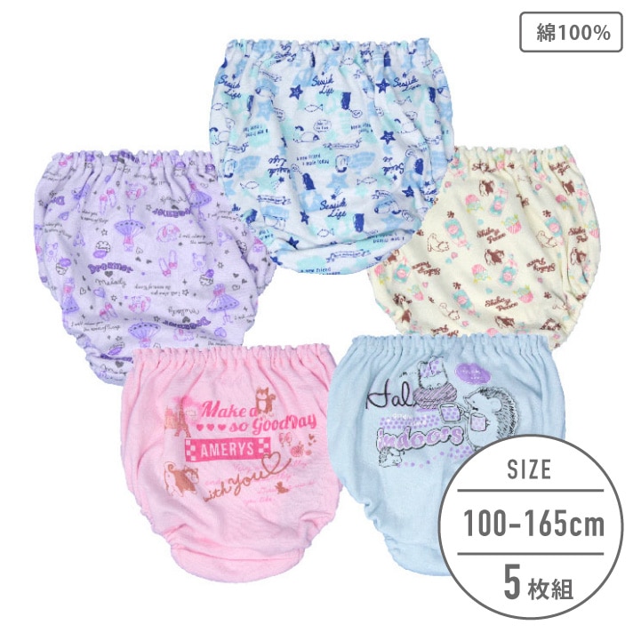 【女の子】キッズジュニアショーツ 5枚組 アニマル柄/総柄・ワンポイント 100~165cm【綿100%】