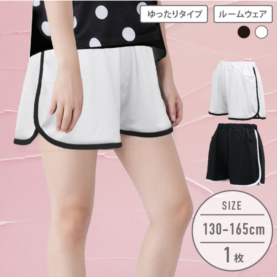 【女の子】ジュニア ショートパンツ ホワイト/ブラック 130~160cm【ルームウェア/吸水速乾】