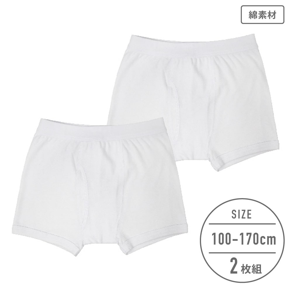 【男の子】キッズジュニア ボクサーパンツ 2枚組 無地/前開き 100~170cm【綿素材】