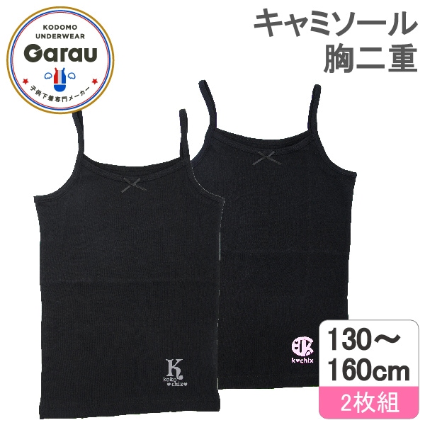 【女の子】ジュニア 胸二重キャミ 2枚組 黒/箔ワンポイント 130~160cm【吸水速乾/綿100%】