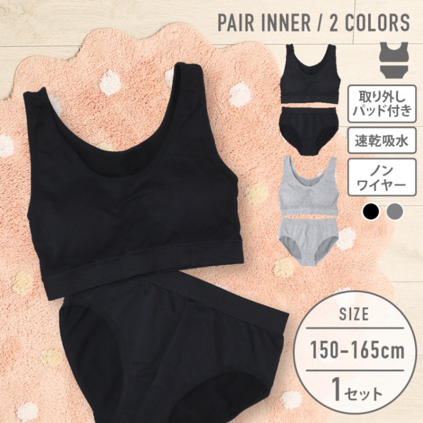 【女の子】【ジュニアブラ】成型 ハーフトップ&ショーツ 上下セット パッド入り 150~165cm【吸水速乾】