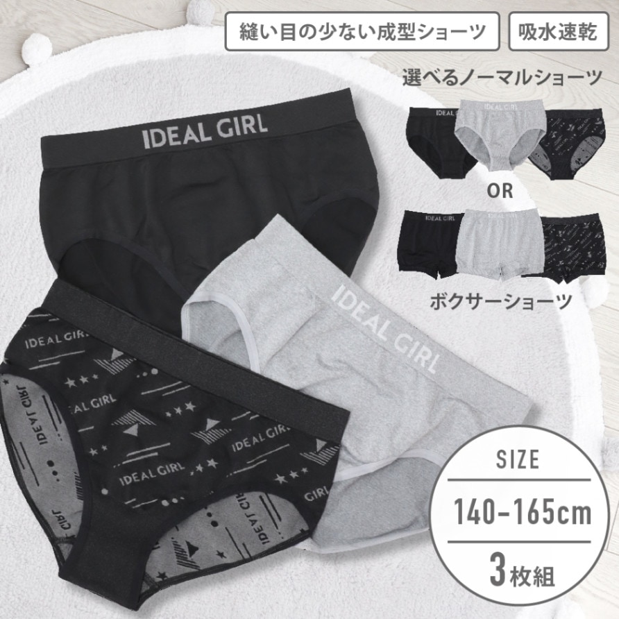 【女の子】成型ジュニアショーツ 3枚組 ノーマル/ボクサー 140~165cm【吸水速乾】