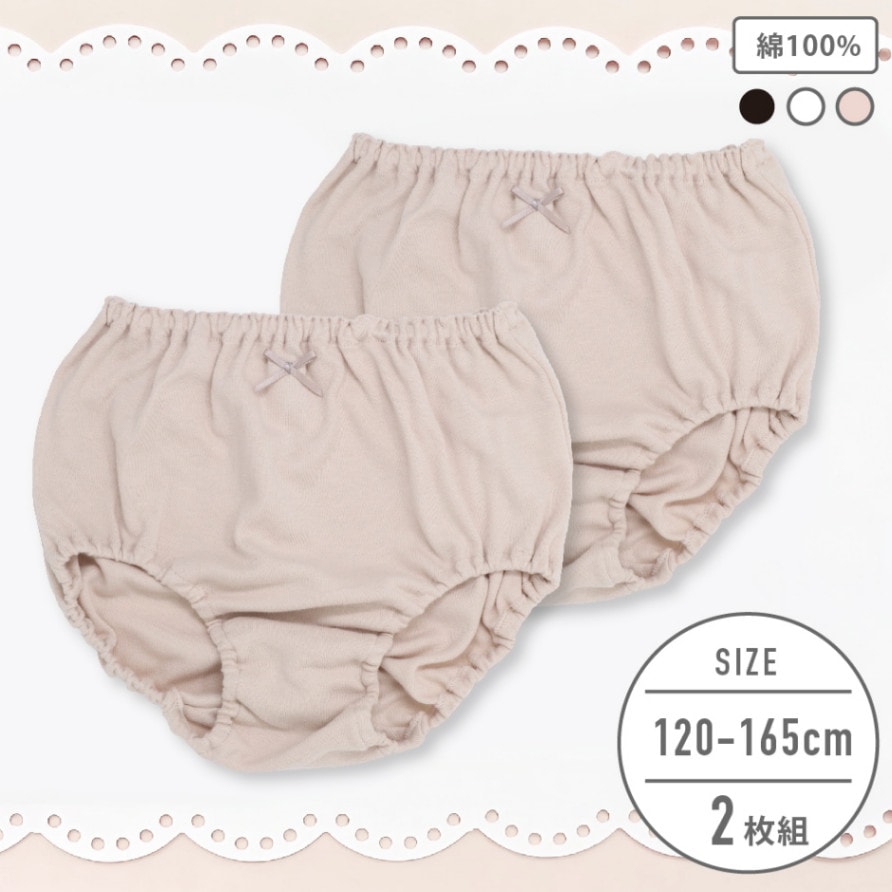 【女の子】キッズジュニアショーツ 2枚組 無地/リボン付き 100~165cm 【綿100%】
