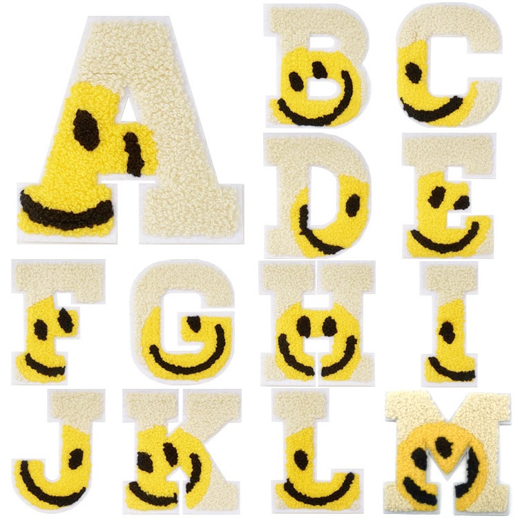 送料無料/ ワッペン アルファベット スマイル A~M 刺繍 アイロン キャラクター にこちゃん ワッペン アップリケ