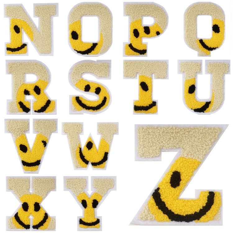 送料無料/ ワッペン アルファベット スマイル N~Z 刺繍 アイロン キャラクター にこちゃん ワッペン アップリケ
