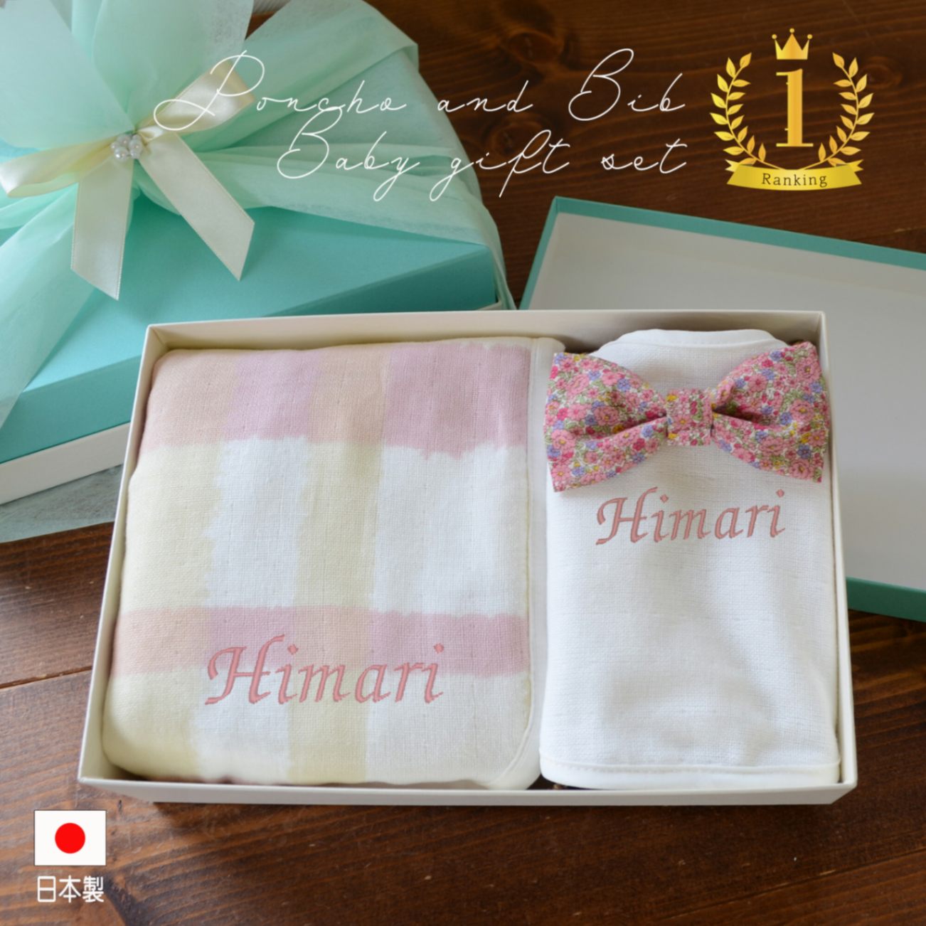名入れ 出産祝い ギフトセット(ポンチョタオル スタイ)E