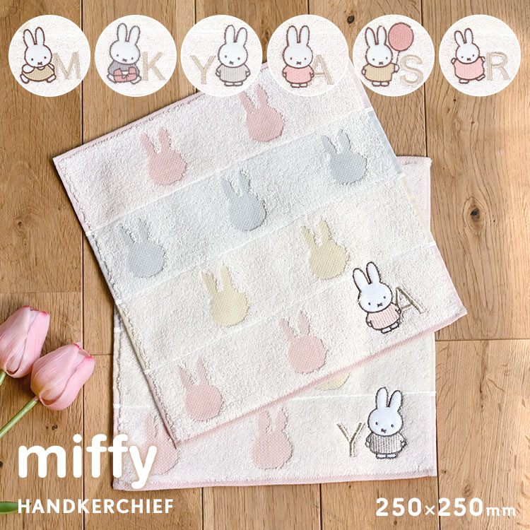 ハンドタオル miffy ミッフィー イニシャル 刺繍 ハンカチ キャラクター プレゼント ミニタオル レディース タオルハンカチ...