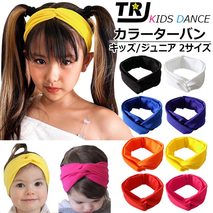 営業日は正午まで当日発送 送料無料 ジュニア キッズ 2サイズ カラーターバン ヘアバンド リボン 子供 女の子 ヘアスタイル ヘ...
