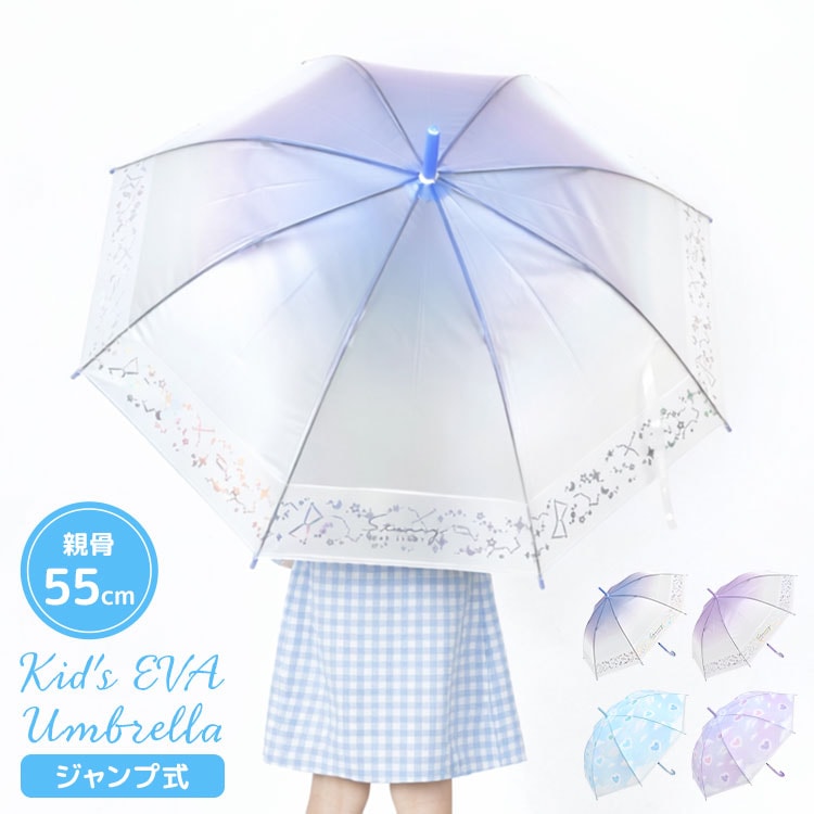子供 傘 キッズ 長傘 55cm 女の子 ビニール傘 半透明 グラデーション スターリーティアライト トゥインクルスカイ ブルー ...