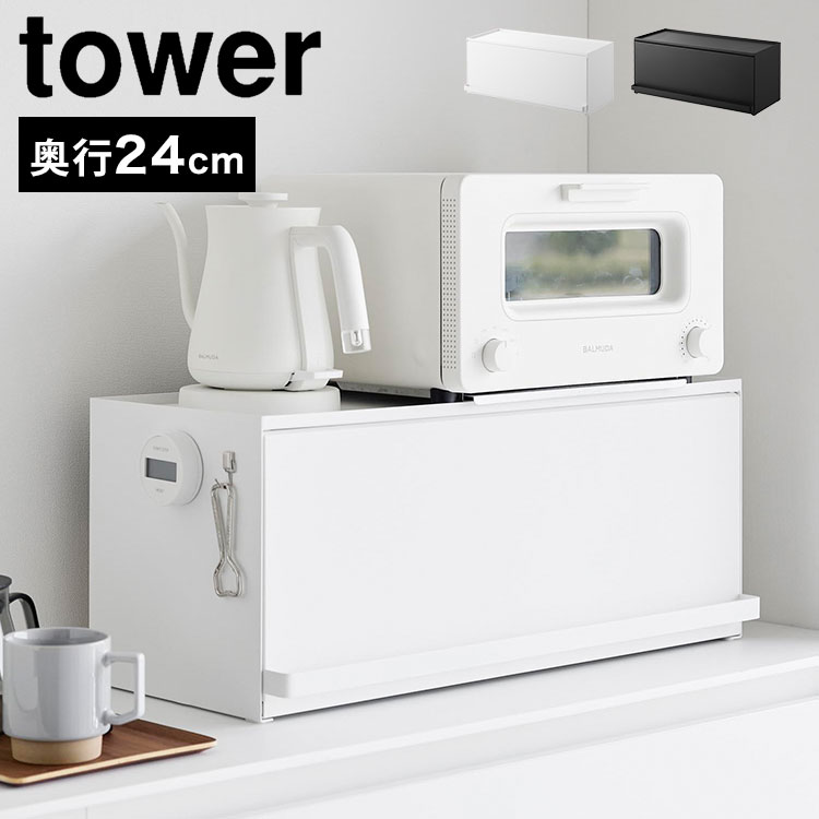 キッチンラック 幅45 山崎実業 tower タワー 10197 10198 カセットコンロが入る家電下ラック 1段 公式 引き出...