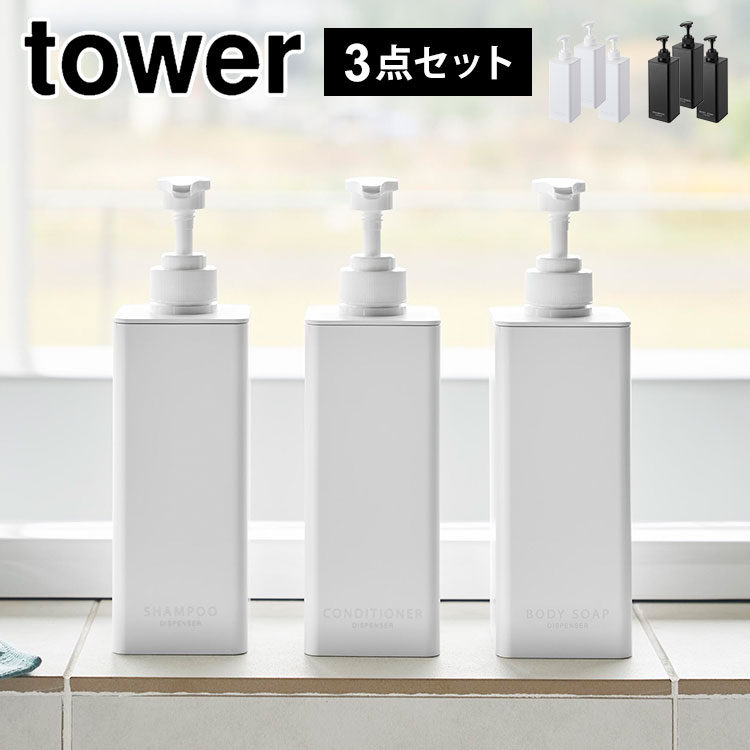 シャンプーボトル 詰め替え そのまま 袋ごと入る 山崎実業 たっぷり洗剤が出るディスペンサー タワー tower 3点セット 簡単...
