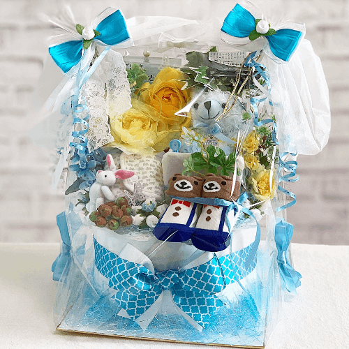 プチサイズ2段 おむつケーキ男の子 プチパルフェ ボーイベビー