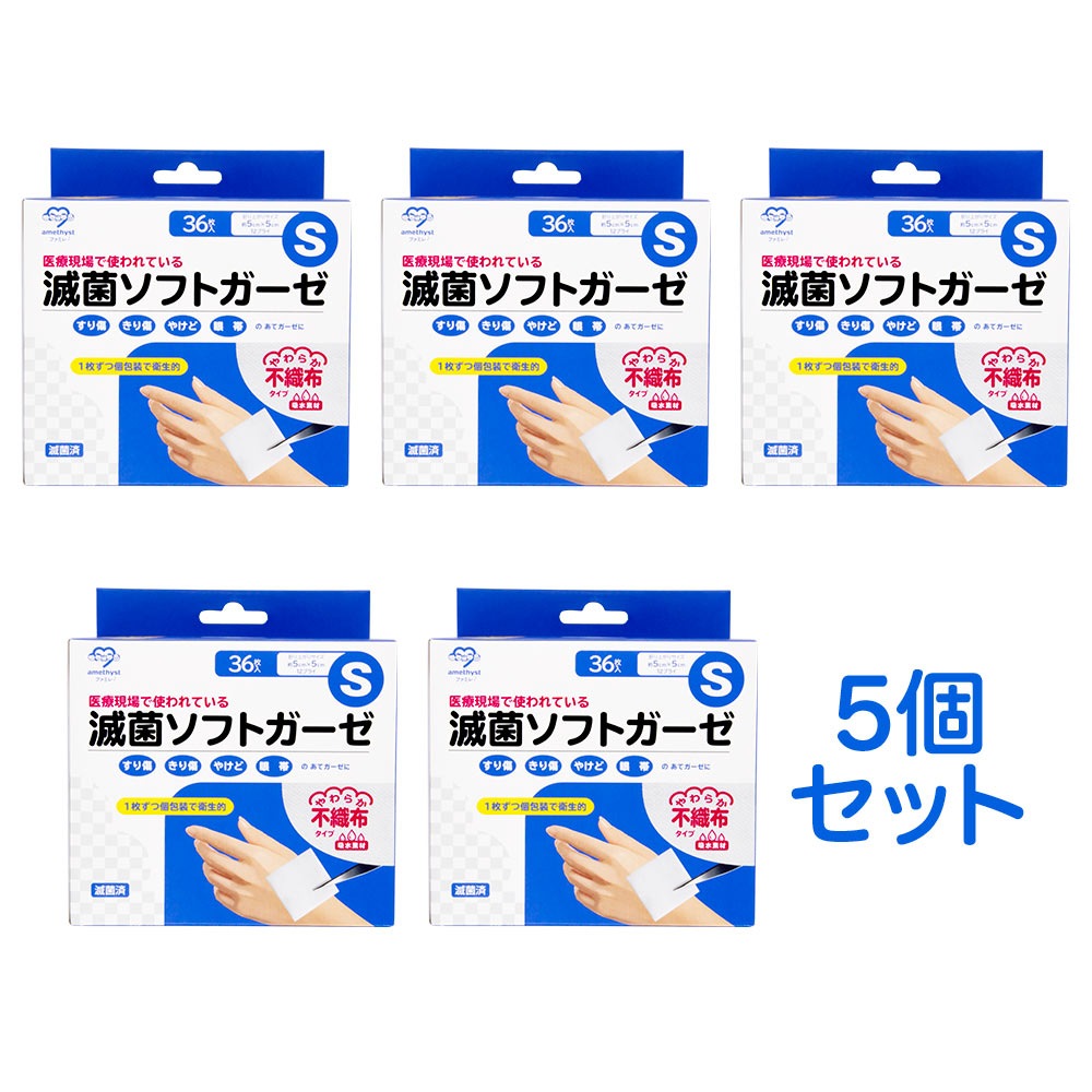 滅菌ソフトガーゼ不織布タイプ S36枚入×5個セット 滅菌済 アメジスト 大衛 医療用 すり傷 きり傷 やけど 火傷 眼帯 カテー...
