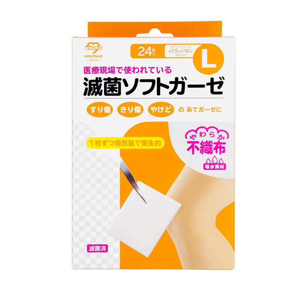 滅菌ソフトガーゼ不織布タイプ L24枚入 滅菌済 アメジスト 大衛 医療用 すり傷 きり傷 やけど 火傷 カテーテル 気管切開用|...