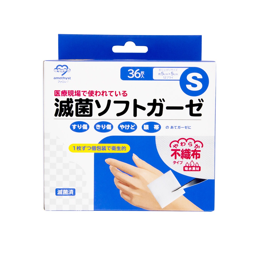 滅菌ソフトガーゼ不織布タイプ S36枚入 滅菌済 アメジスト 大衛 医療用 すり傷 きり傷 やけど 火傷 眼帯 カテーテル 気管切...