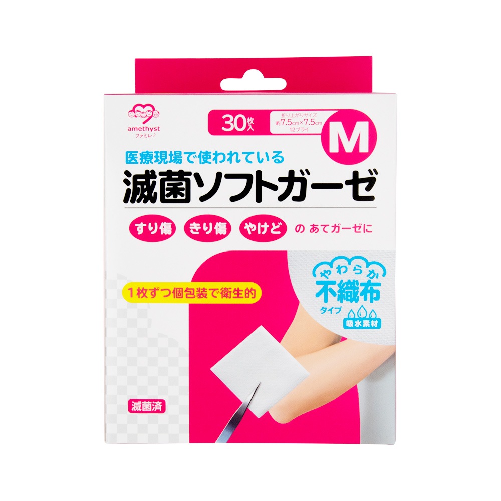 滅菌ソフトガーゼ不織布タイプ M30枚入×5個セット 滅菌済 アメジスト 大衛 医療用 すり傷 きり傷 やけど 火傷 カテーテル ...