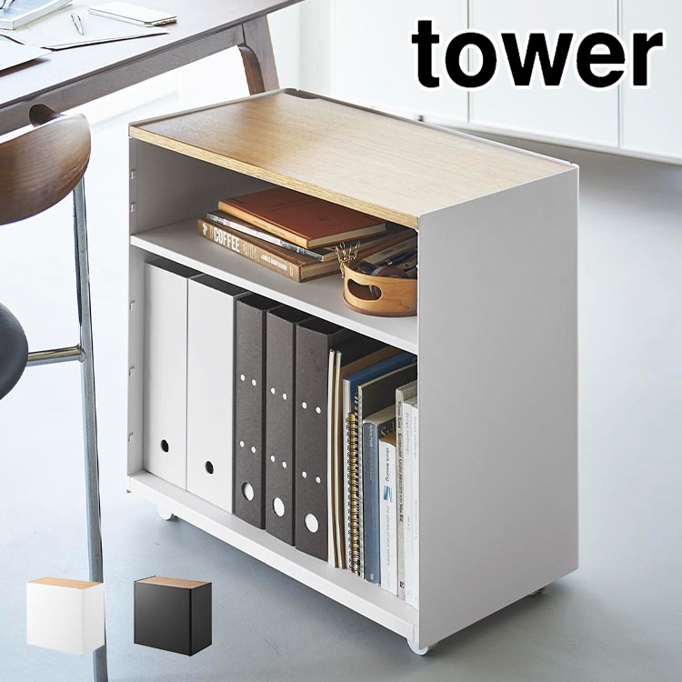 山崎実業 隠せるテレワークワゴン tower タワー デスクワゴン 2段 キャスター付き プリンター 置き場 サイドチェスト 黒 ...