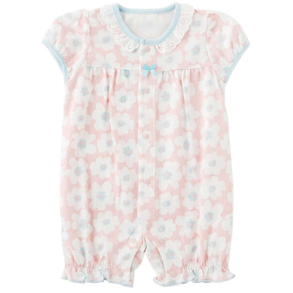 【新生児】 フローラル半袖前開きカバーオール 【50-60cm】