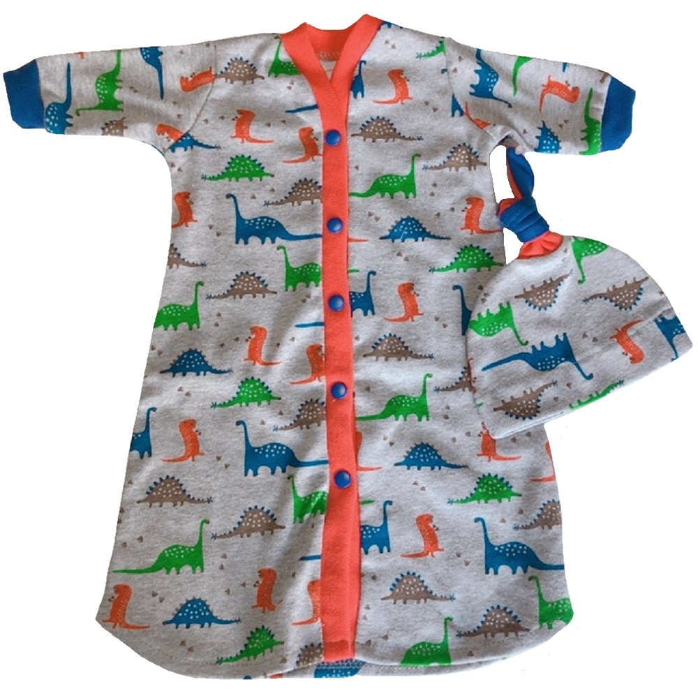 【未熟児】【低出生体重児】【早産児】用 ベビー服:ジュラシックガウン 帽子付き