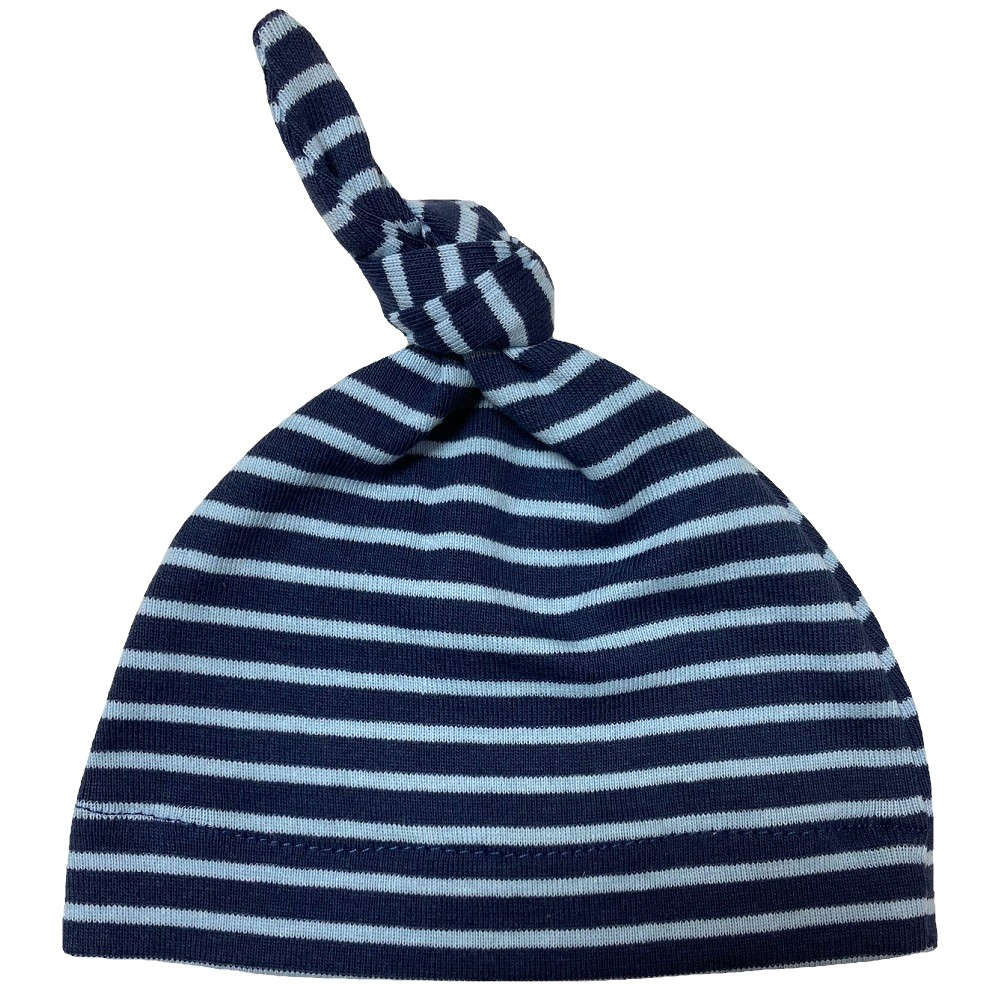 【未熟児】【低出生体重児】【早産児】【NICU】用 ベビー服:ノット帽子 ネイビーストライプ