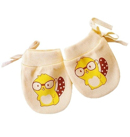 【かきむしり】【保護】 紐調整付き 新生児ミトン:イエローりす