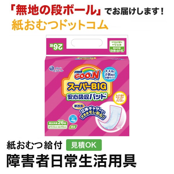 グーン スーパーBIG安心吸収パッド 26枚入 中間サイズ 紙おむつ 尿とりパッド