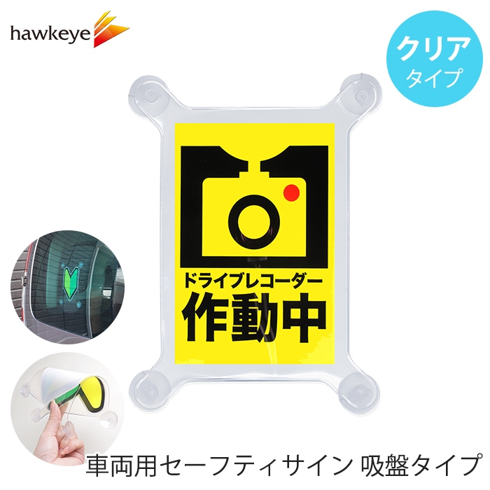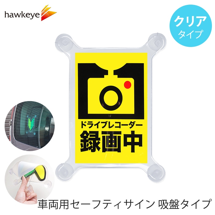 【吸盤 クリア ドライブレコーダー作動中】セーフティサイン 吸盤タイプ ドライブレコーダー作動中