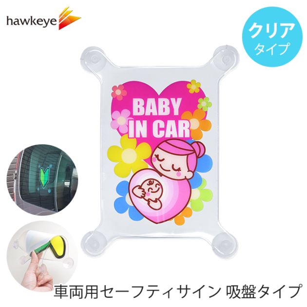 【吸盤 クリア BABY IN CAR】セーフティサイン 吸盤タイプ BABY IN CAR