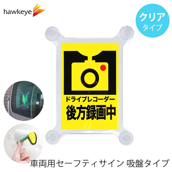 【吸盤 クリア ドライブレコーダー後方録画中】セーフティサイン 吸盤タイプ ドライブレコーダー後方録画中